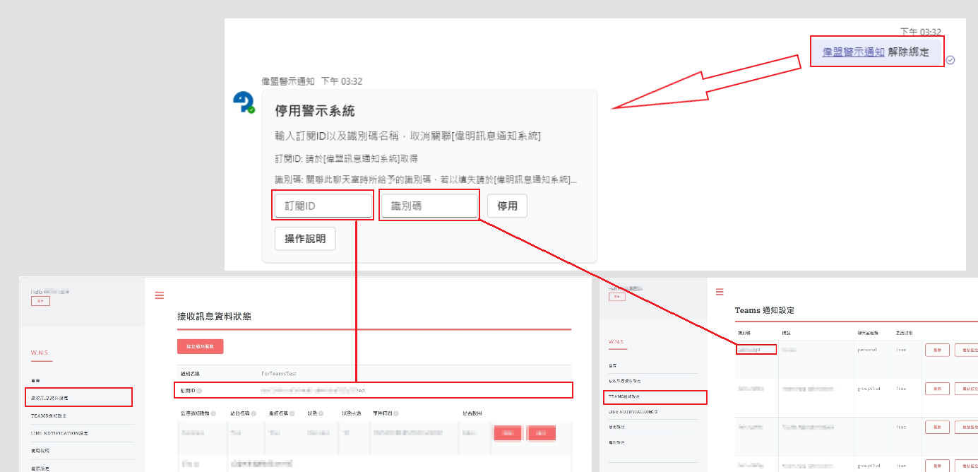 4. 填入訂閱ID以及先前對於此聊天室的識別碼,送出後即可完成停用步驟。
