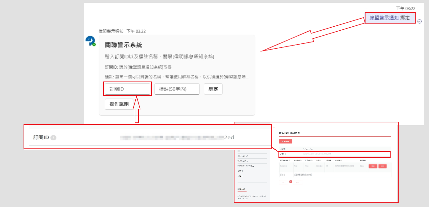 [訂閱ID]請於[觀察者設定]中取得,[標註]請設定一個方便辨識的名稱